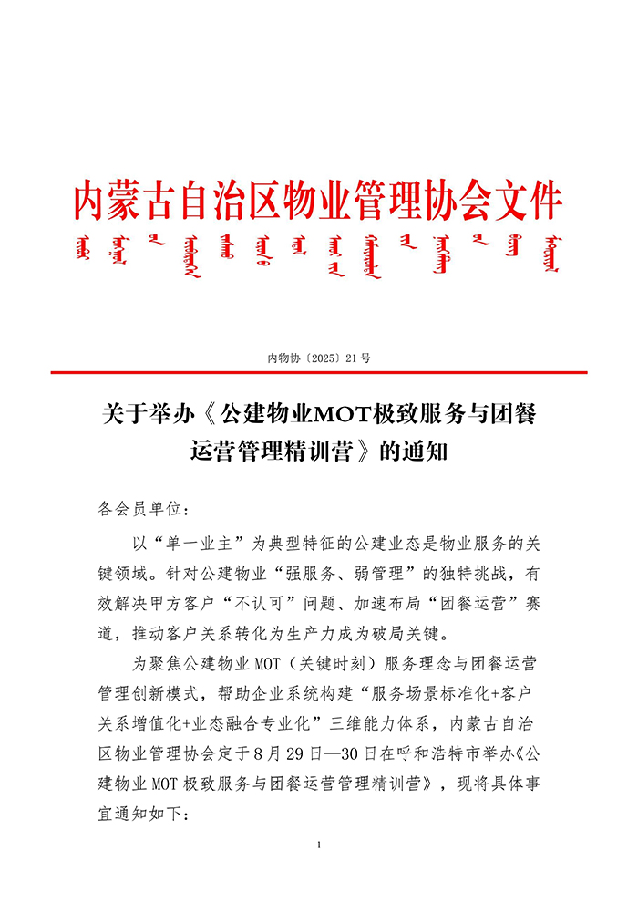 关于举办《公建物业MOT极致服务与团餐运营管理精训营》的通知