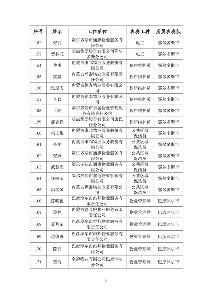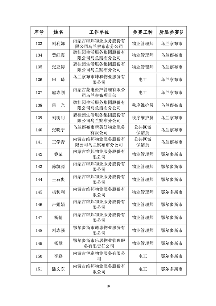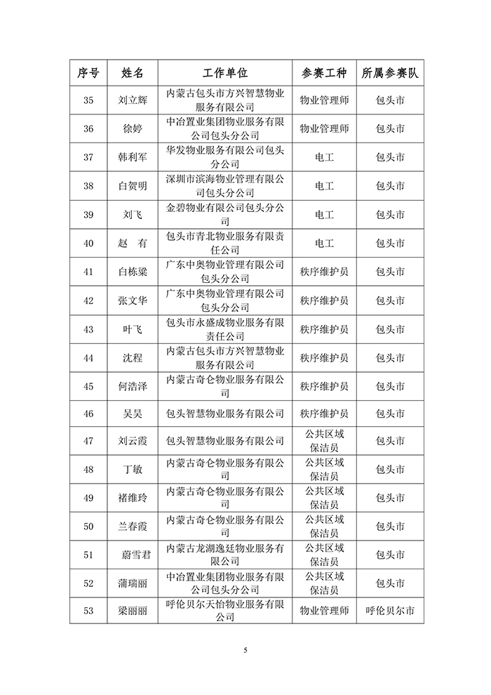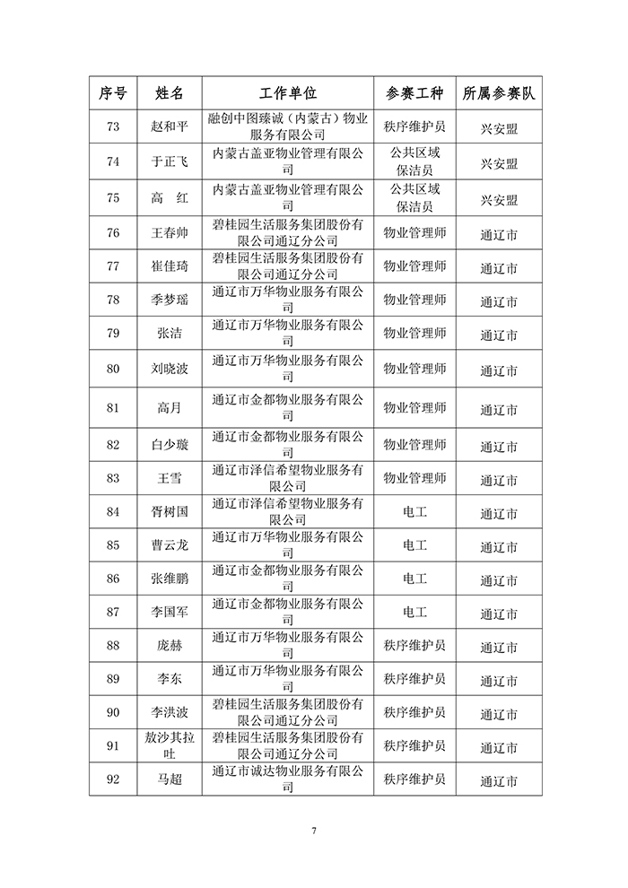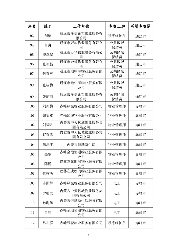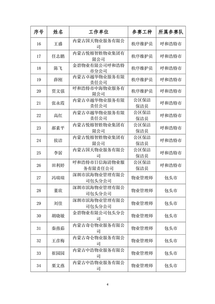 关于对全区物业管理行业职工职业技能比赛暨第六届内蒙古自治区物业管理服务技能大赛参赛选手及裁判员名单的公示