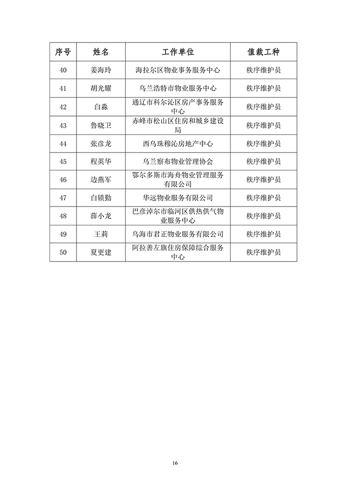 关于对全区物业管理行业职工职业技能比赛暨第六届内蒙古自治区物业管理服务技能大赛参赛选手及裁判员名单的公示.pdf