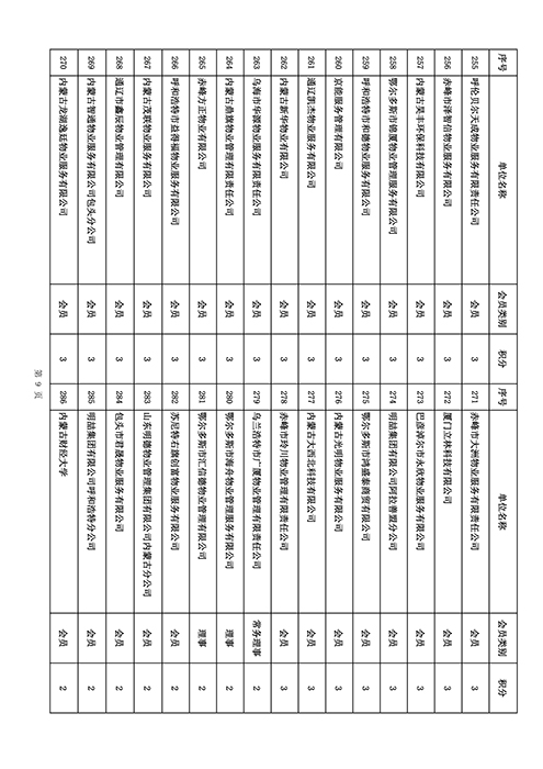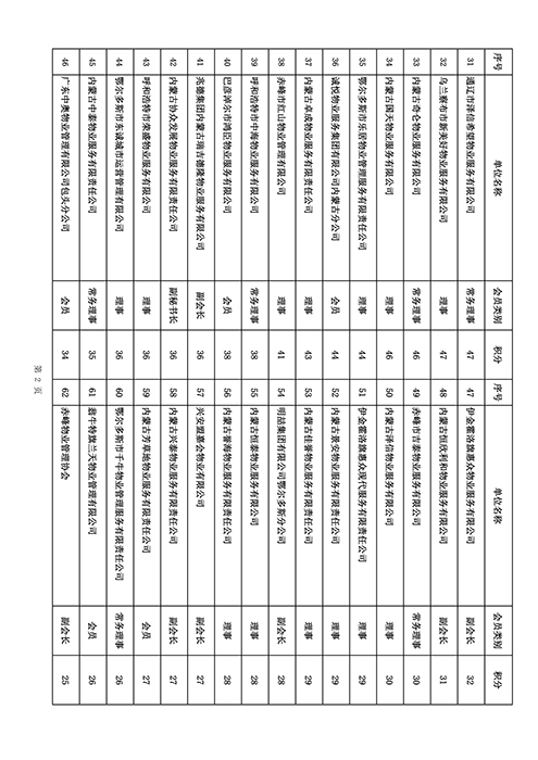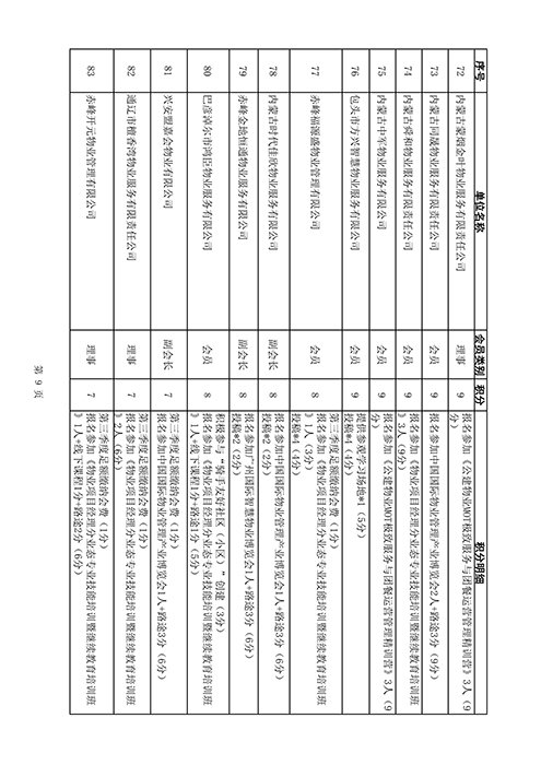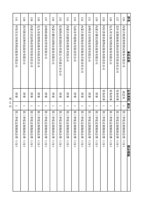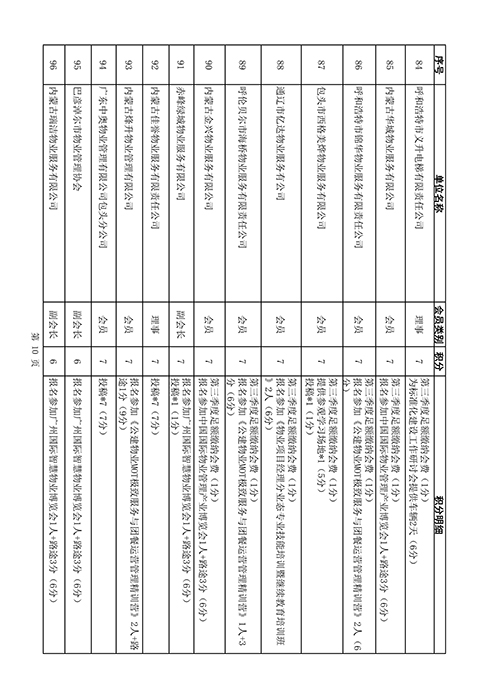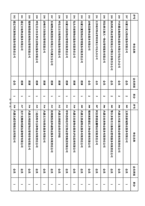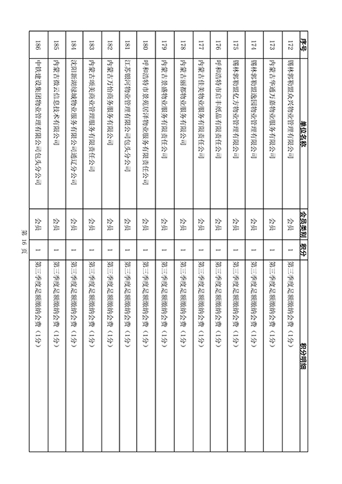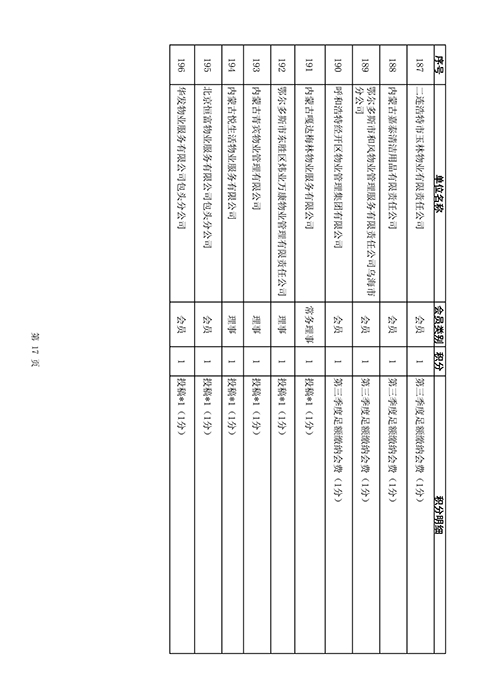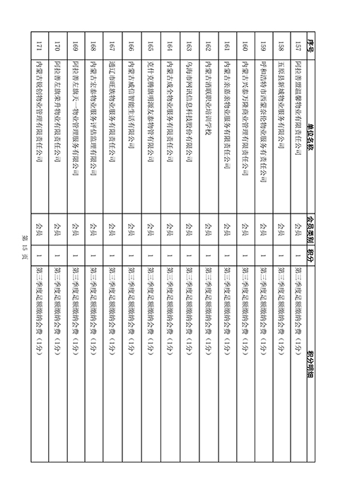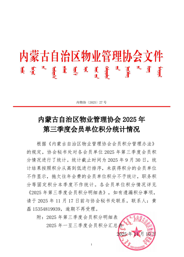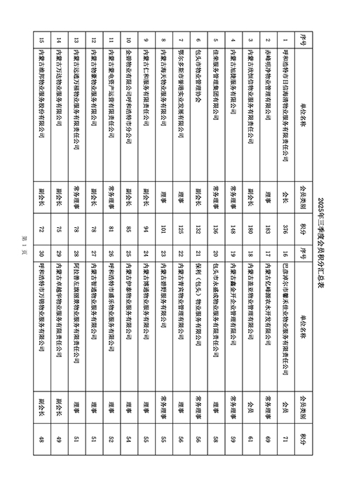 内蒙古自治区物业管理协会2025年第三季度会员单位积分统计情况