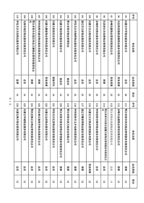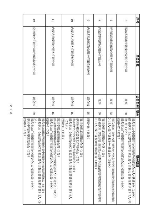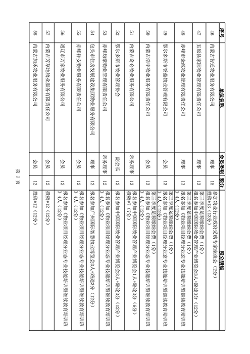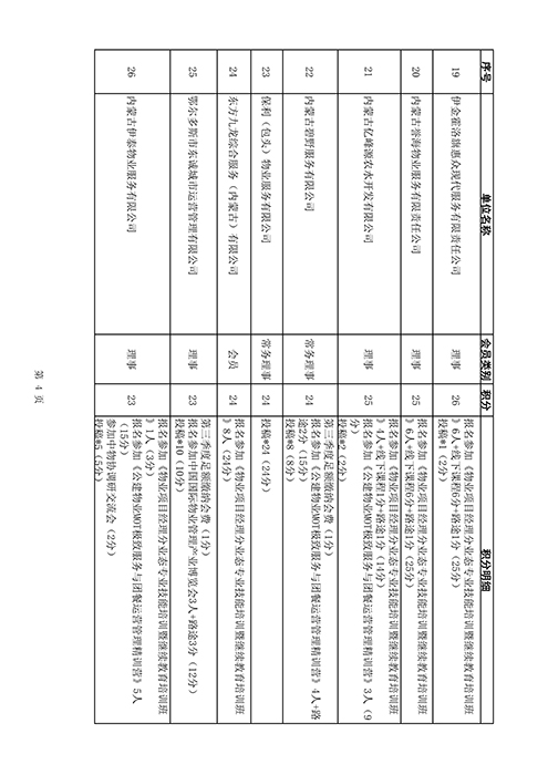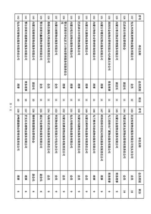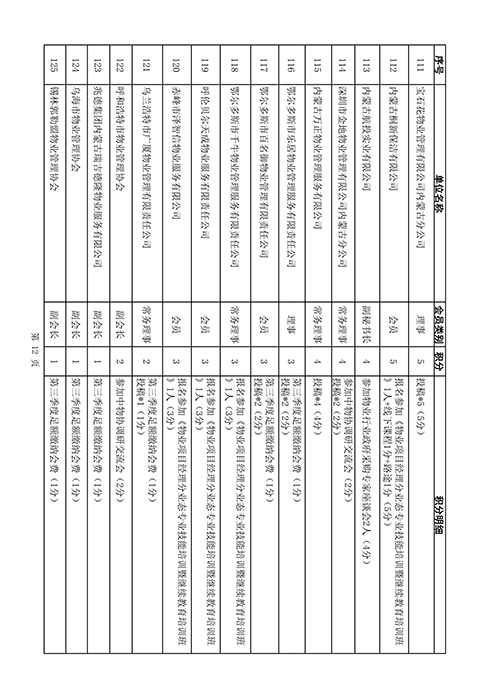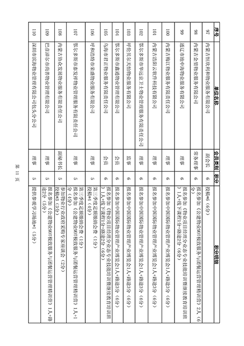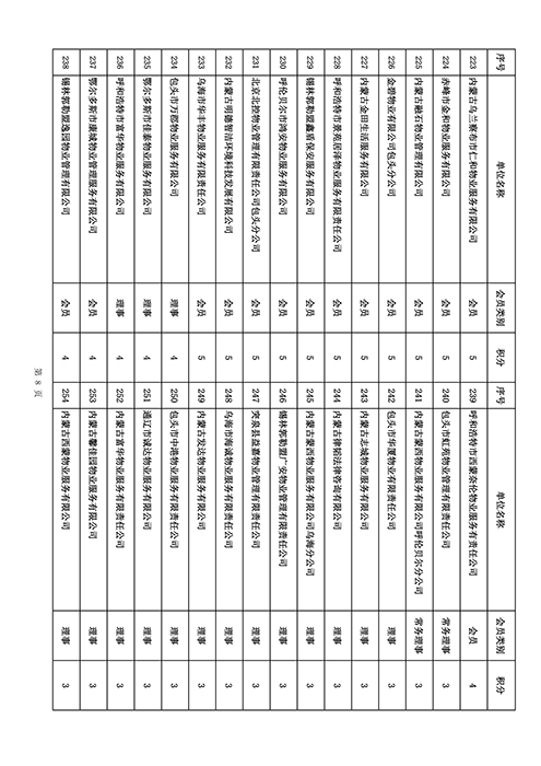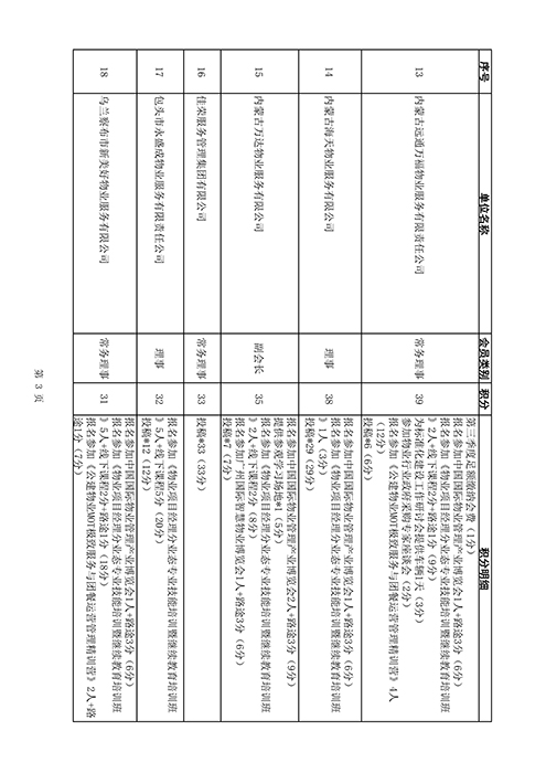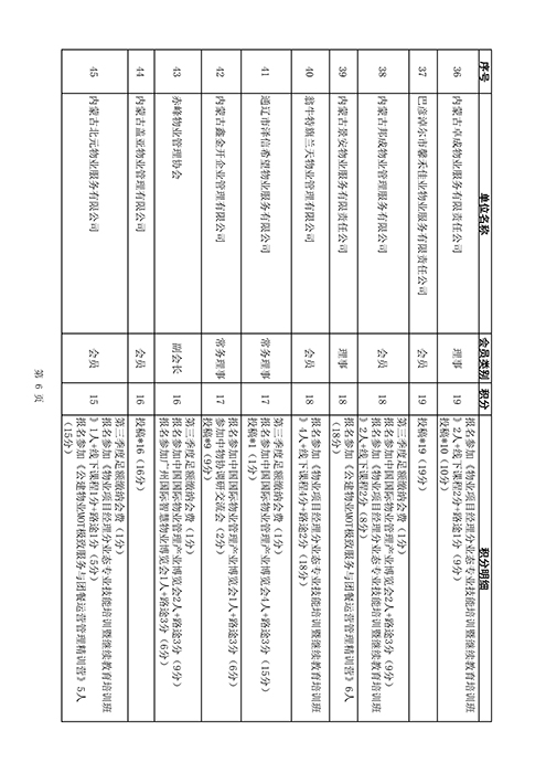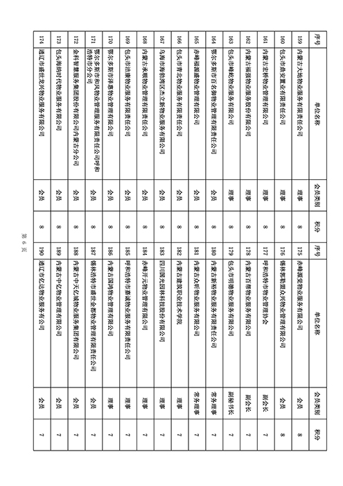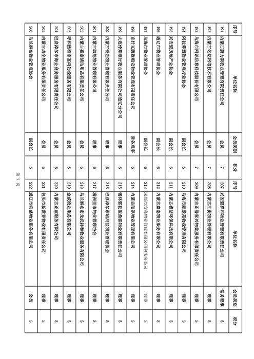 内蒙古自治区物业管理协会2025年第三季度会员单位积分统计情况