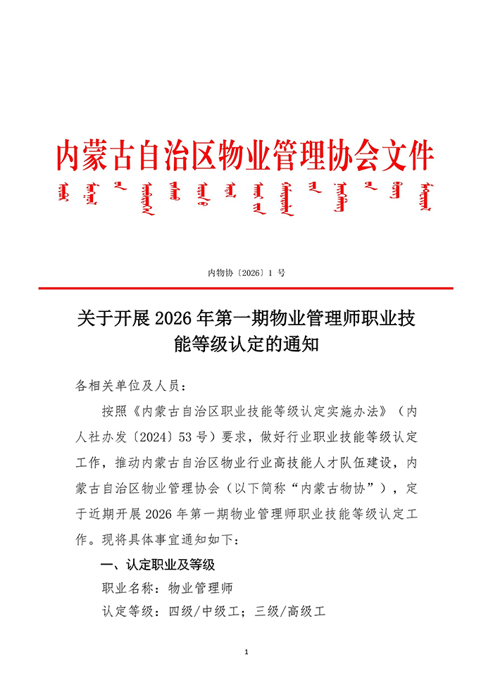 关于开展2026年第一期物业管理师职业技能等级认定的通知
